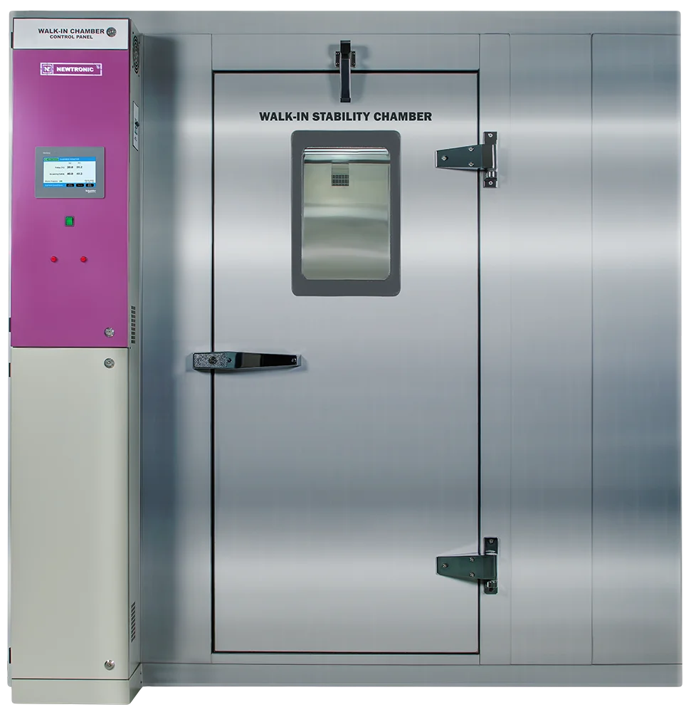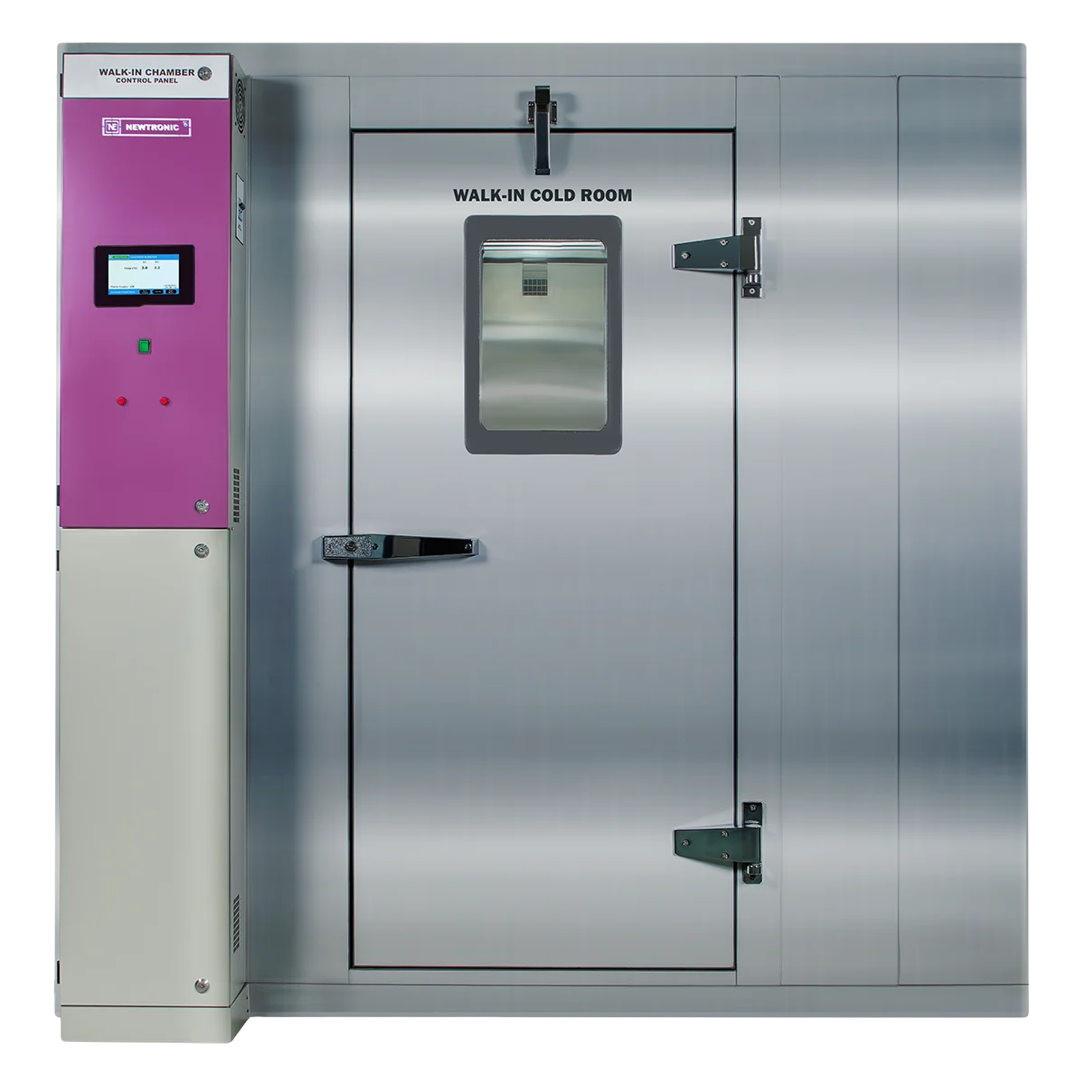 The humidity system utilizes non-condensing steam injection for reach-ins and small capacity walk-ins, and operates on the principles of dew point control for walk-ins.