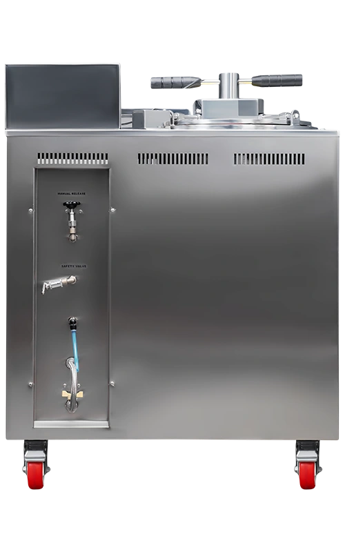 Insulated tank for better performance. Top-Opening lid, with single lever mechanism and self-bulge seal rim. PU wheels for easy movement.Class A PT-100 4pt. Scanner for accurate control/monitoring.All operations through a single 7” Color Touch Screen Display. Complete Operations driven through IOT enabled controller with data logging. 6 nos. of pre-loaded recipes (customizable).