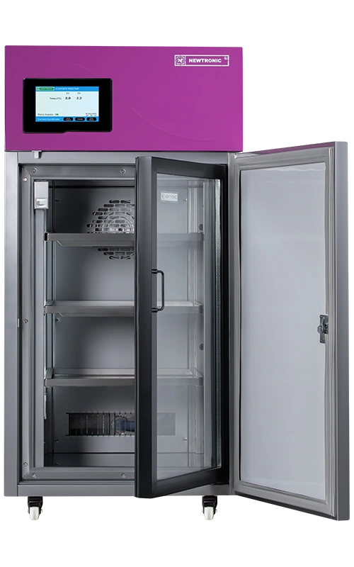 Our full line of refrigerators provide superior temperature uniformity, reliability and an eco-friendly construction for the safe storage of working and reference standards, vaccines, reagents, raw materials and other critical samples. Newtronic chambers have become the defect standard for stability studies of Refrigerated Products.